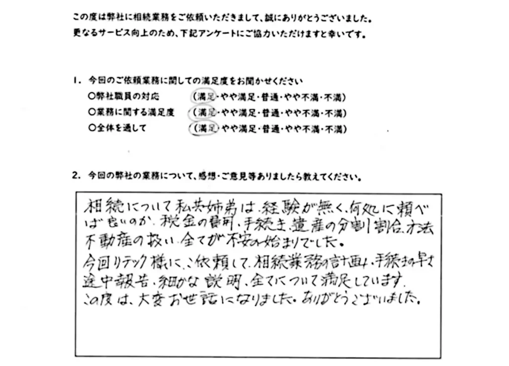 - 相続について経験がなく、全てが不安だった