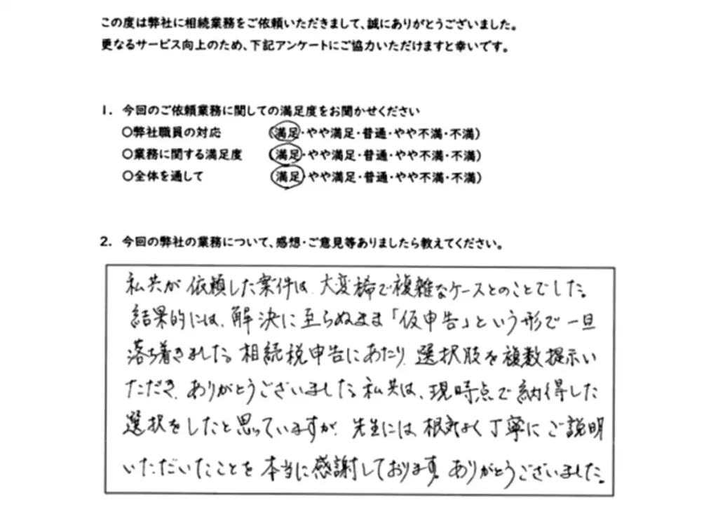 - そのため申告にあたり複数案提示してもらい、納得する選択ができた